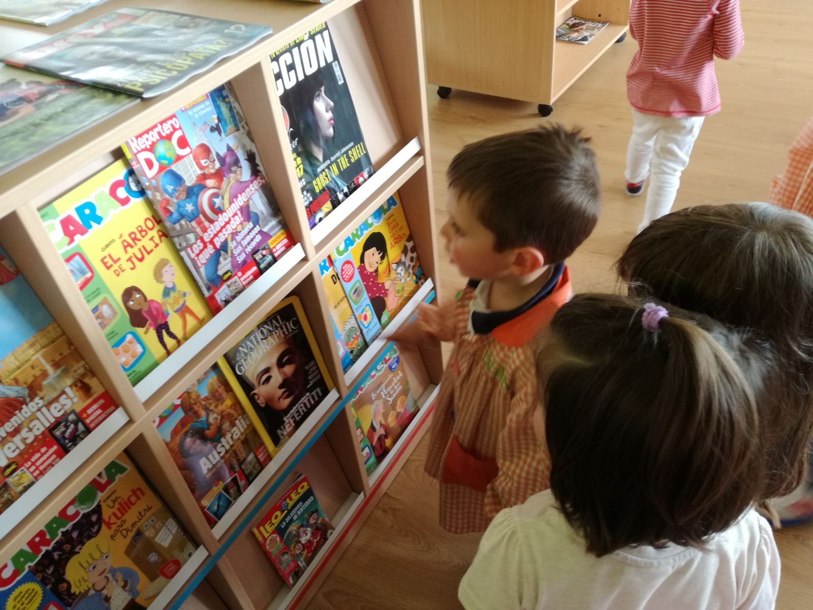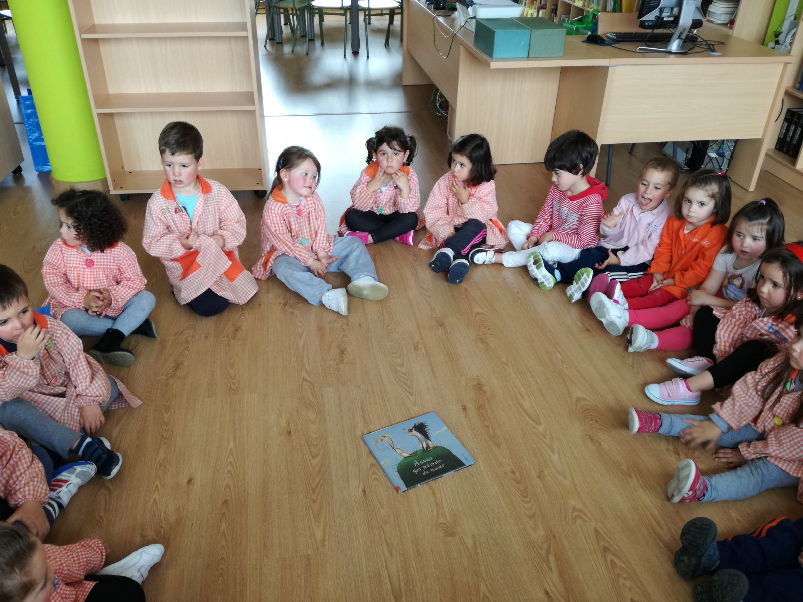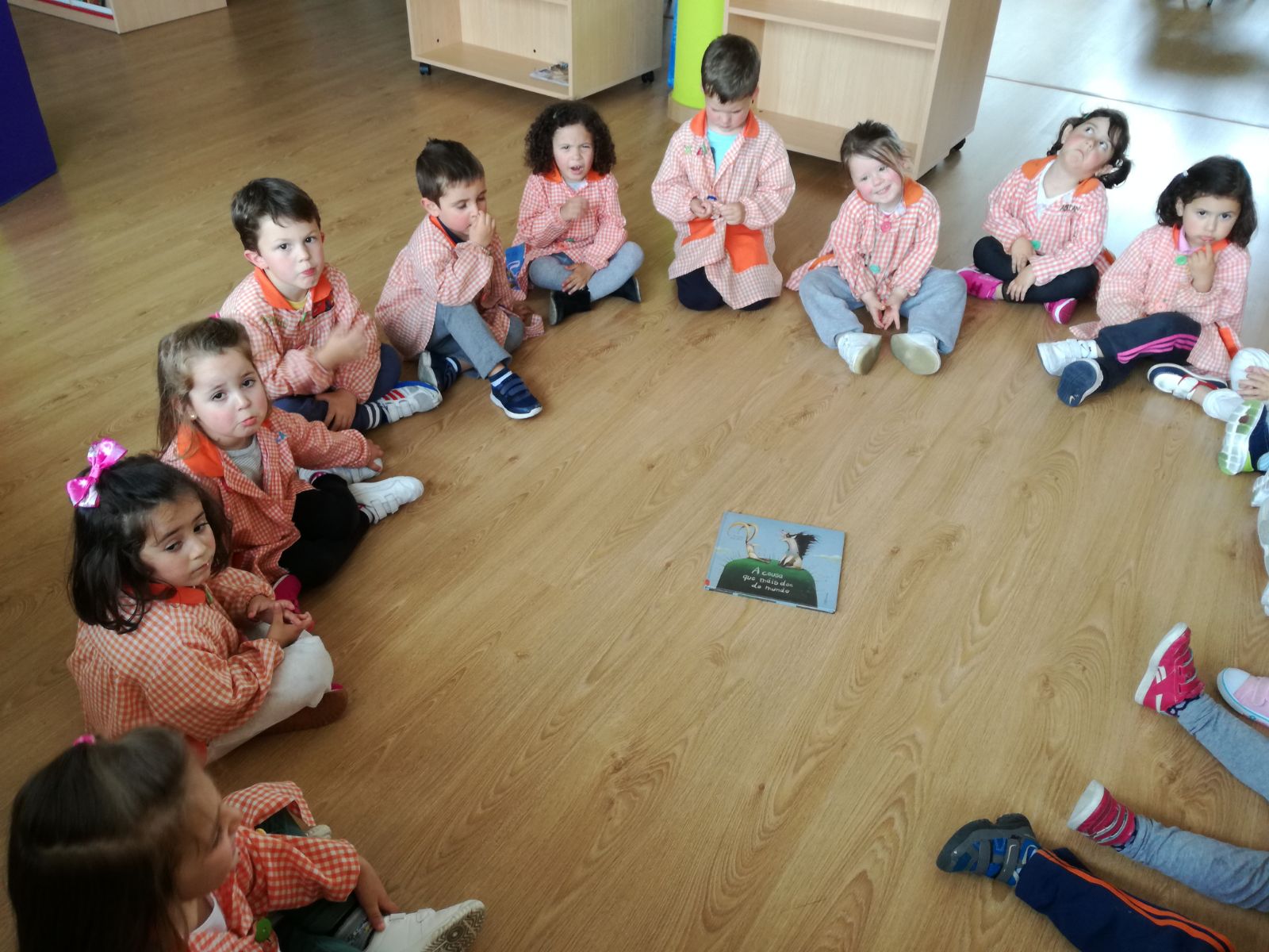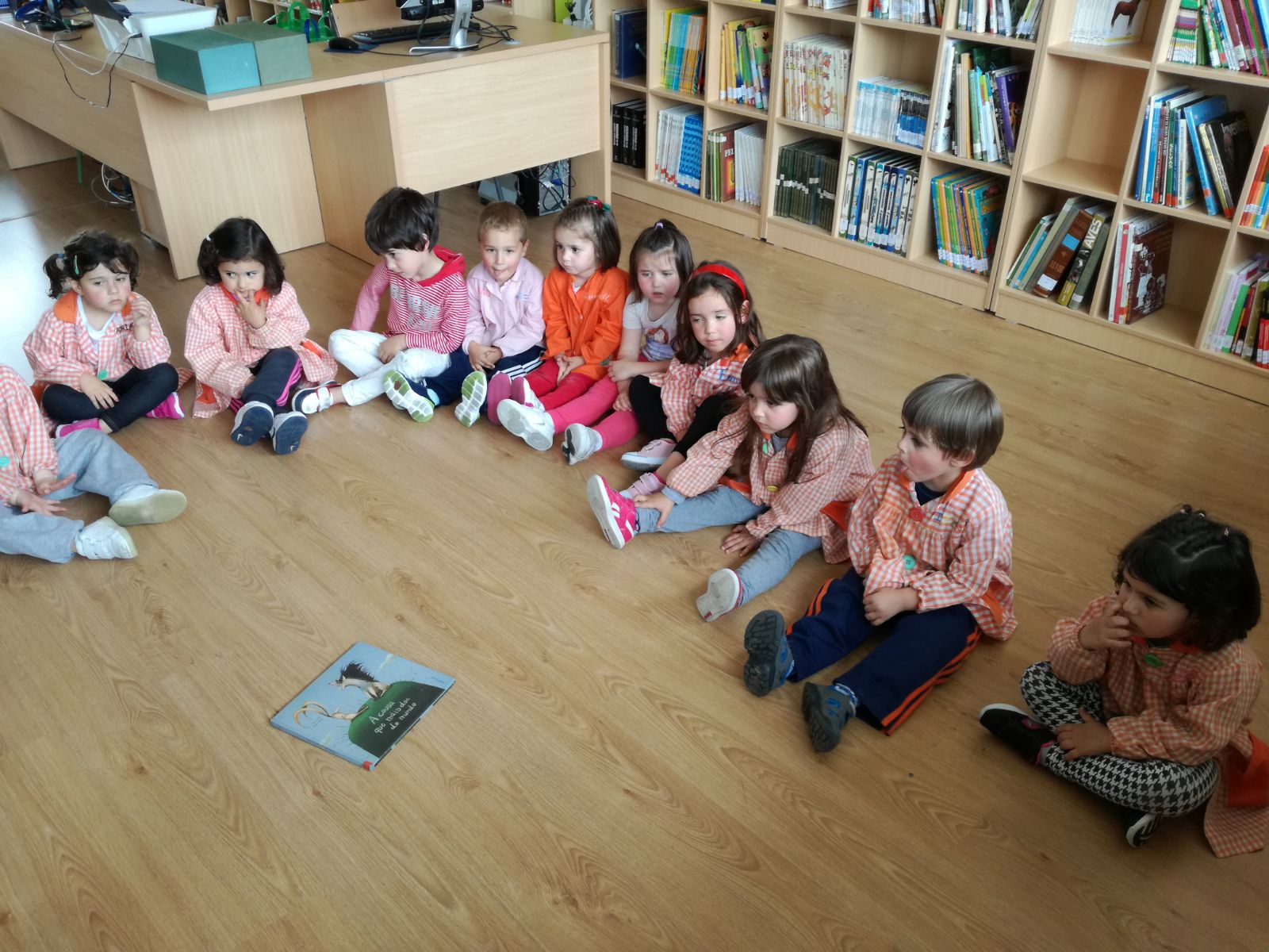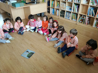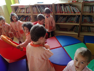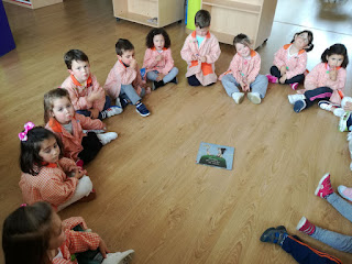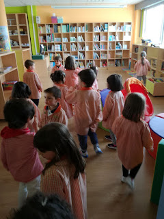 Os nen@s de tres anos suben á biblioteca do cole. ...