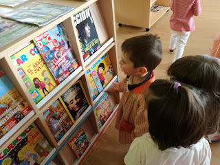 Os nen@s de tres anos suben á biblioteca do cole. Toda unha experiencia!!!