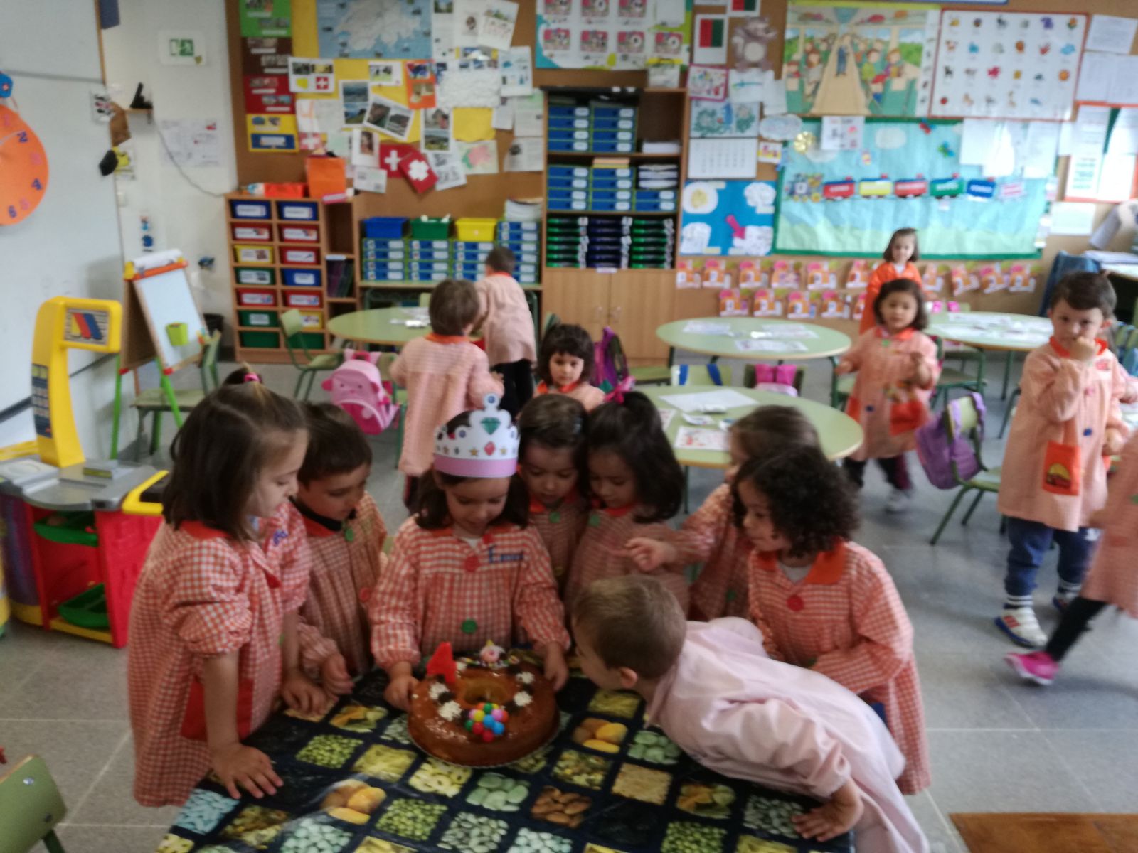 Os nen@s de tres anos suben á biblioteca do cole. ...