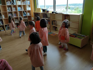 Os nen@s de tres anos suben á biblioteca do cole. ...