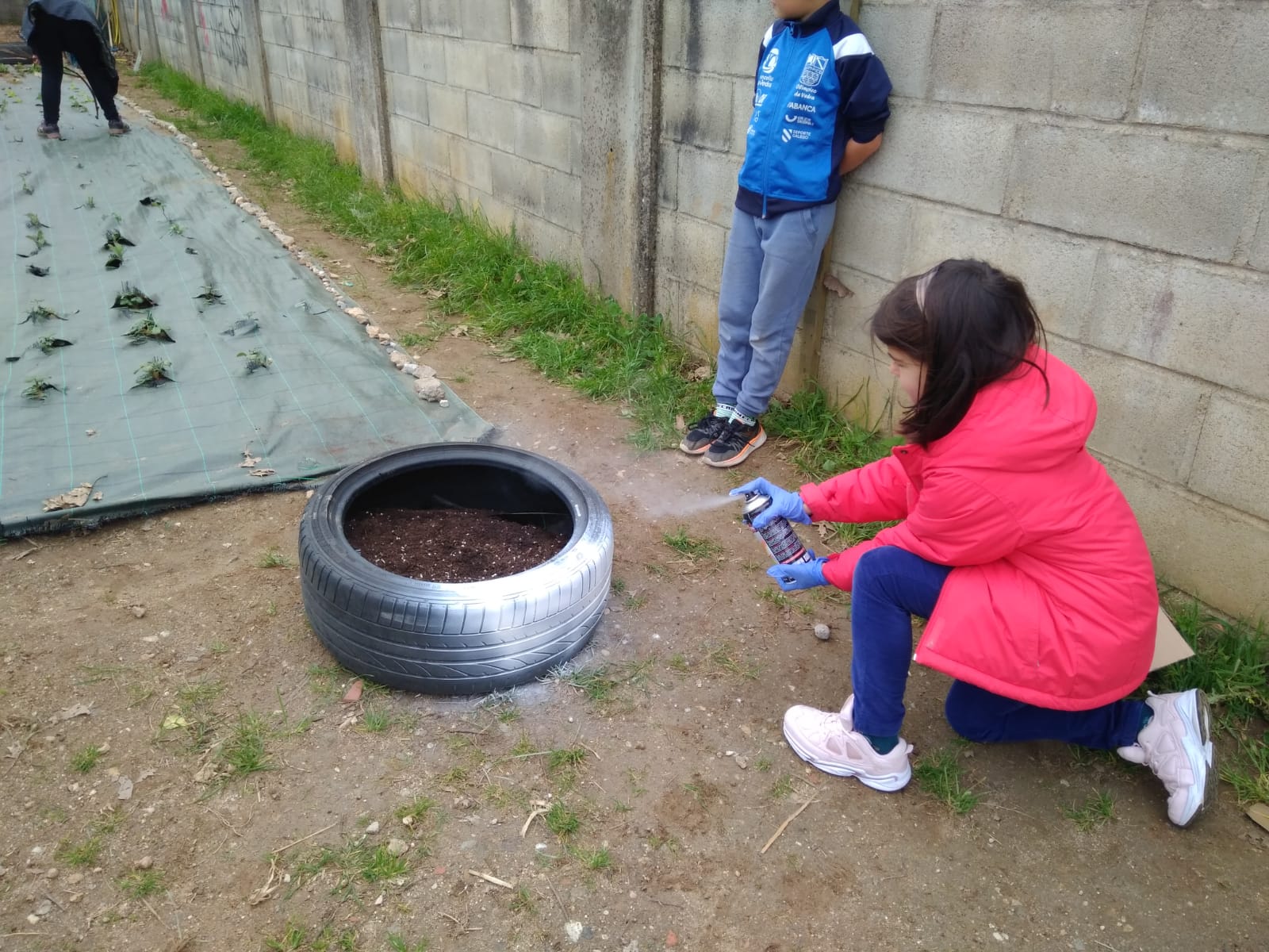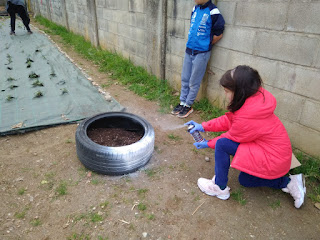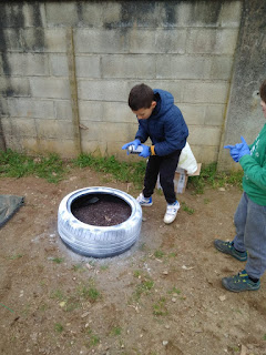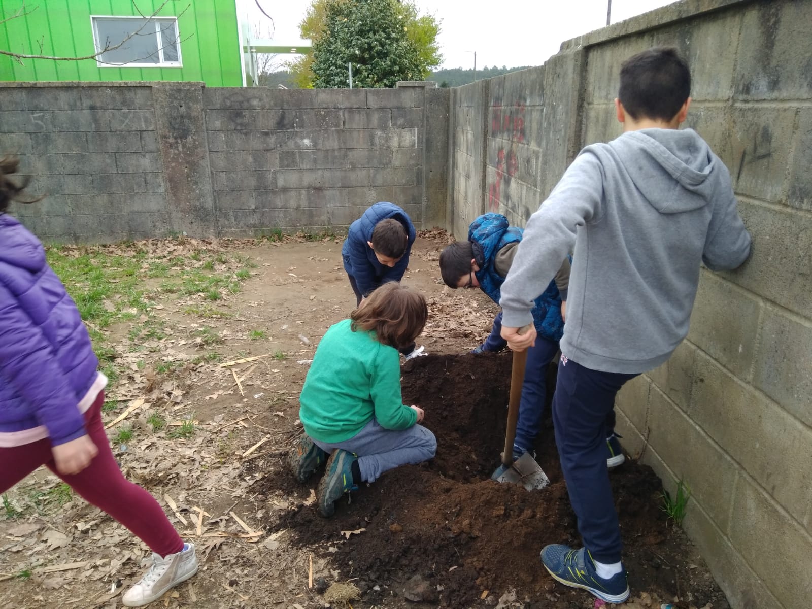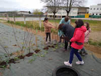 O longo do segundo trimestre, todo o cole estivo traballando arreo no horto. Os maiores de quinto colocaron a malla e entre todos e todas plantamos repolos, amorodos, chícharos...