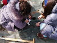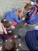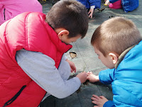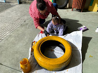 Xogamos a meter palliñas de cores por buratiños pequenos. |