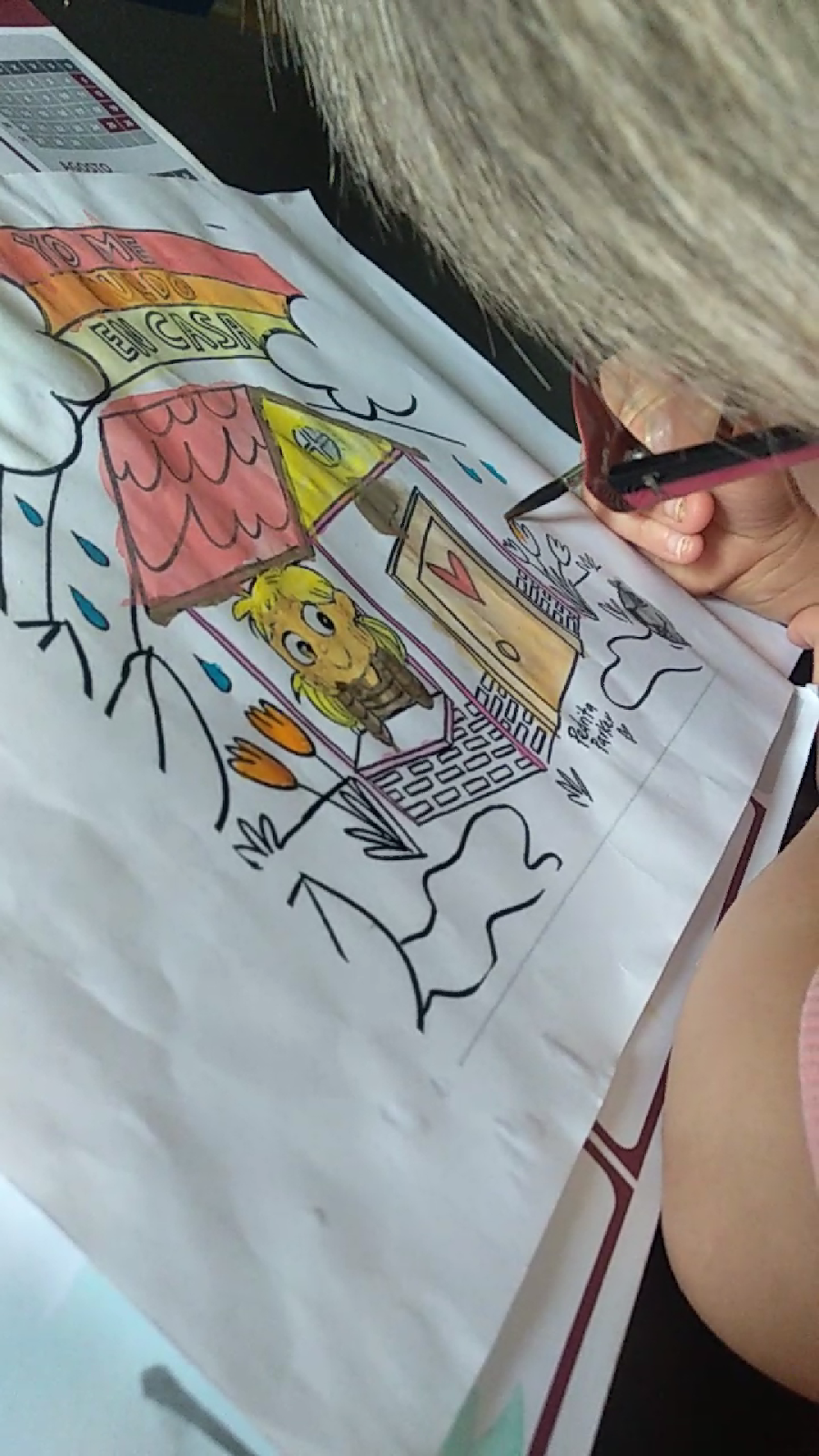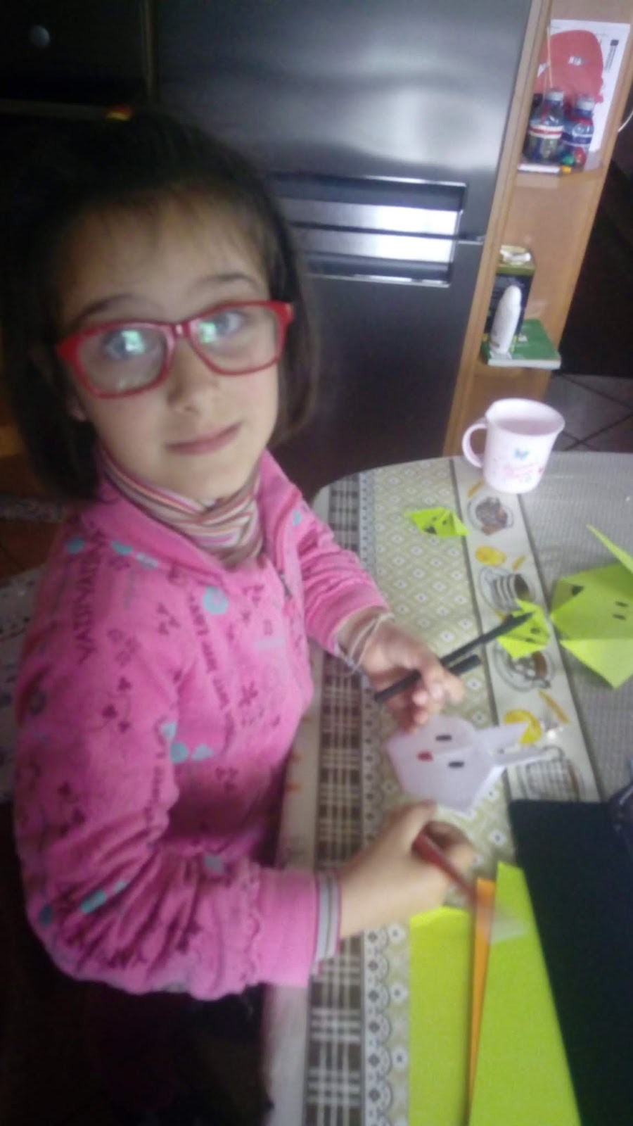 E por último temos a Lía! Onte estivo pintando as bonecas recortables e vendo algo na tablet que parece que lle fai moita gracia...que sería?