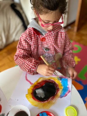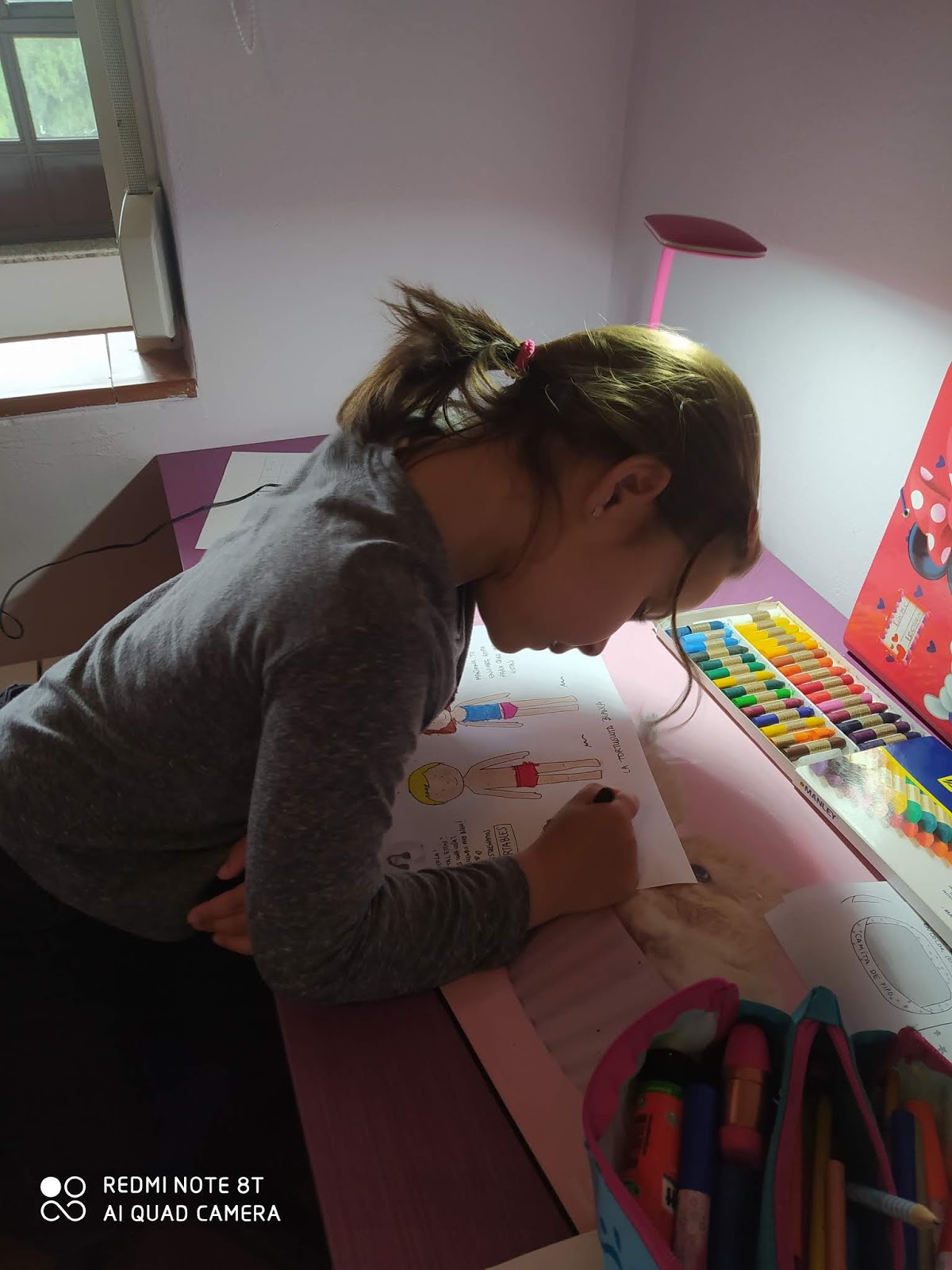 Pola súa banda Sofía encheu a casa de obras de arte a partir do conto "O Punto" acompañada do seu irmán Diego. xa que o confinamento non entende de idades!